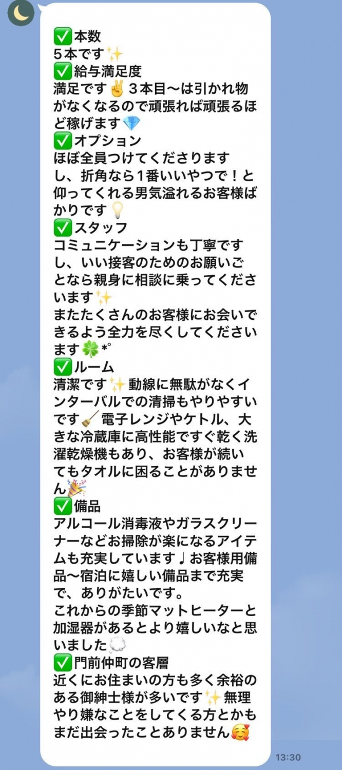 完全個室プライベートサロン。門前仲町のメンズエステ愛好家から愛されております。メンエス初心者男性や、メンエス通からも支持を受けてます。リラックスと癒しの空間を提供。